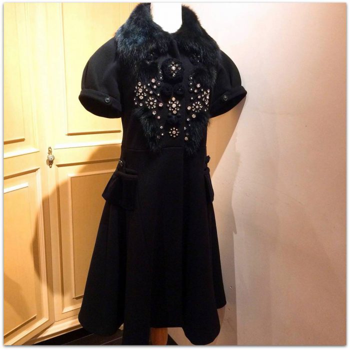 装飾が目を惹くこちらのコート。これだけデコラティブでありながらChloeらしく可愛らしいのは、華やかなビジューとファーの組み合わせに素朴な印象のコードやポンポンが加わることで、全体が柔らかく見えるからこそ。